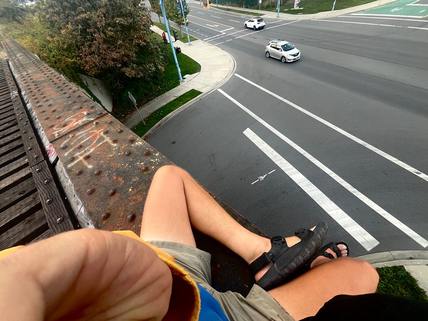 Maybe that's why when I went for a walk recently and found an old abandoned railroad trestle in the western part of Victoria's downtown in Canada, where I live now. I climbed over a fence and went and sat on it for a while