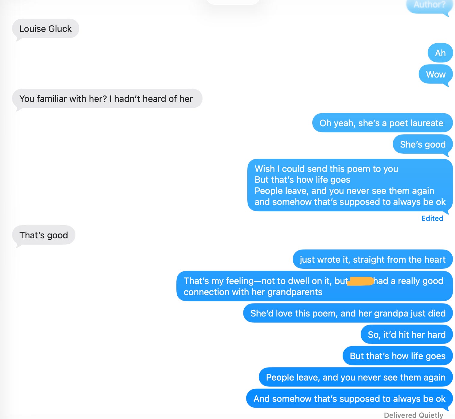 She loved this poem, and her grandpa just died