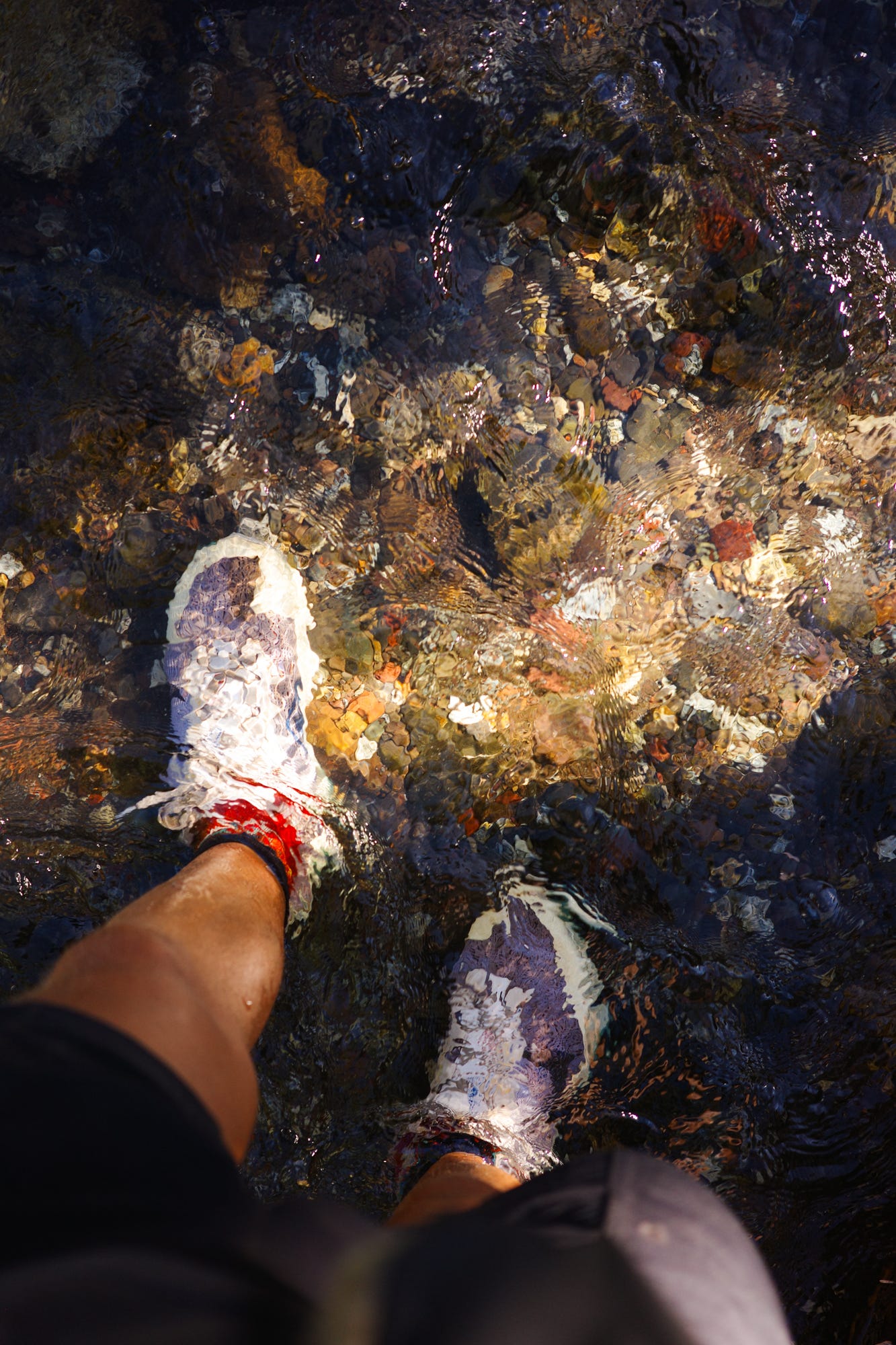 The heat flickers, the grasshoppers leap, my feet keep moving,